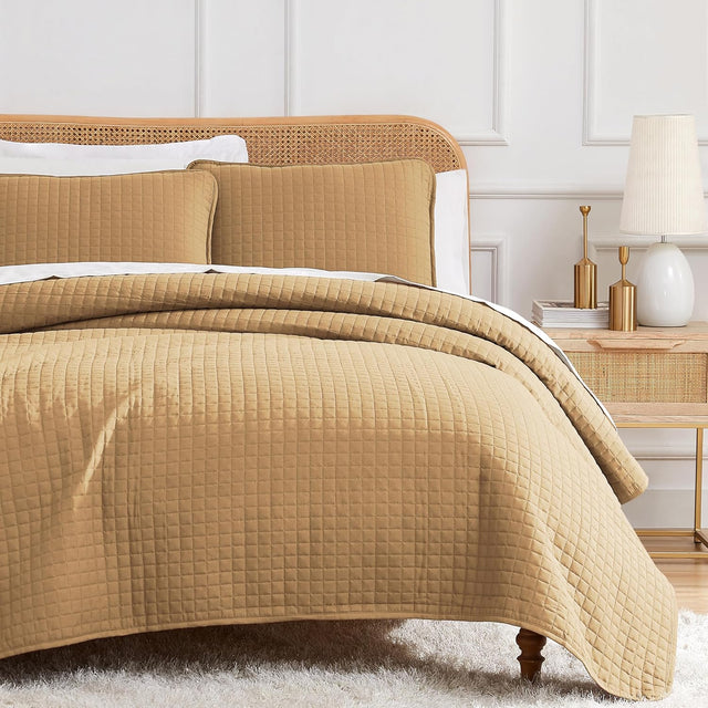 Grid Luxe Muted Gold Bed Spread