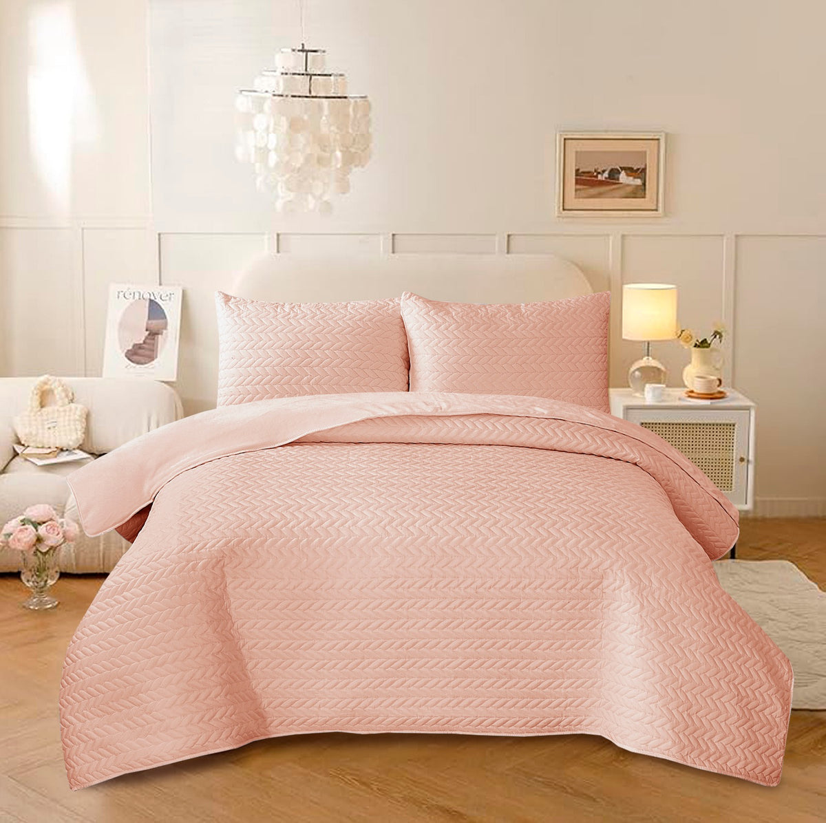 Diamond Echo Blush Pink Bedspread