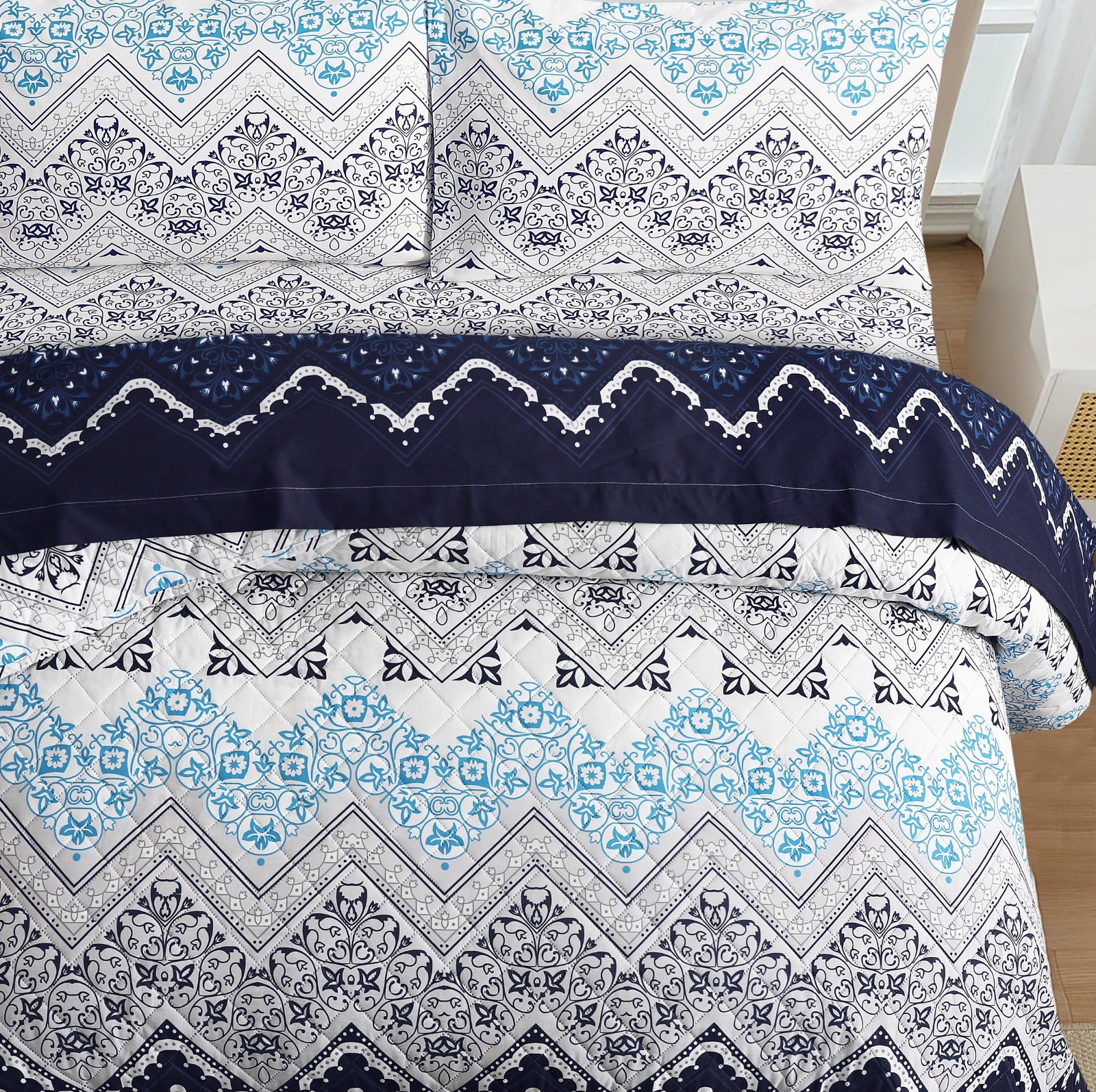 Azure Ancestory Quilted Bed Spread Set